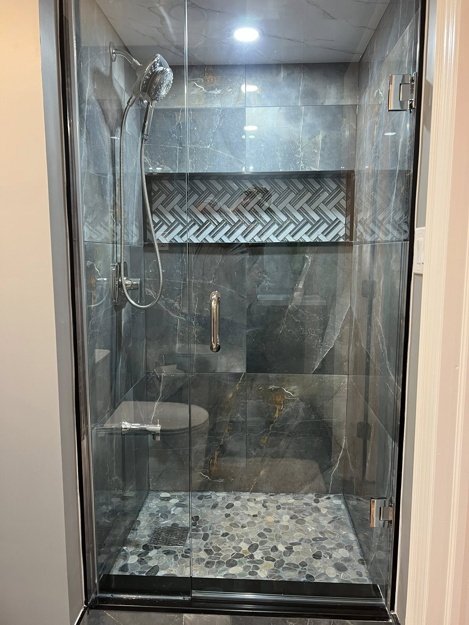 Installation of curbless (barrier-free) entries, rain-head fixtures, and multi-jet systems.